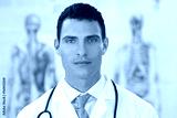 Male Doctor In Hospital With Human Anatomy Charts