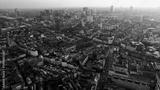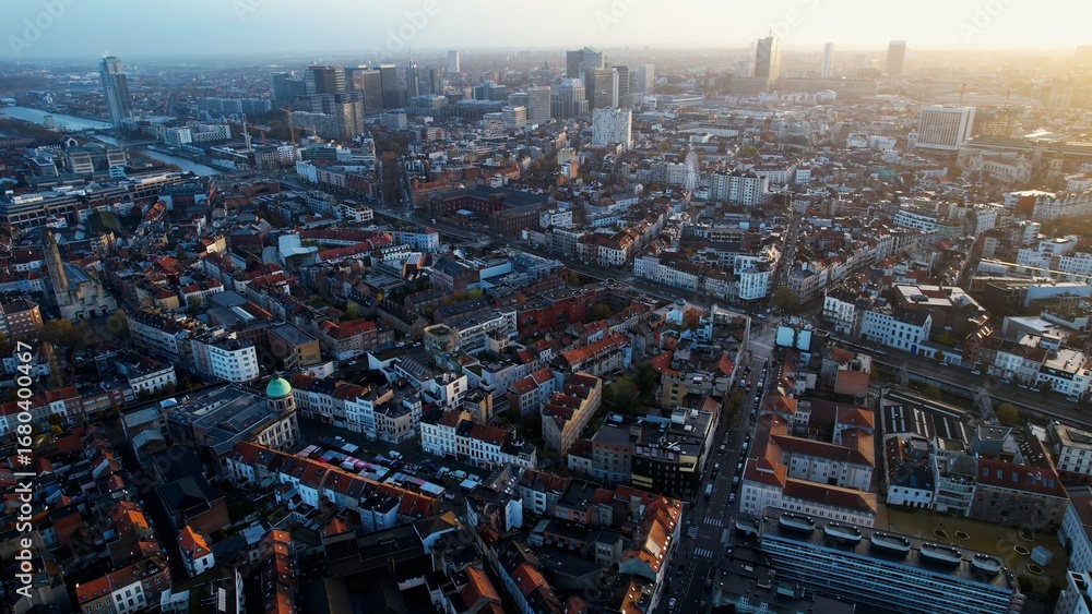 An aerial panorama view around the downtown of the City Brussels In Belgium on a cloudy spring morning