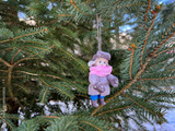 Hobby. Christmas tree toys made of cotton wool.