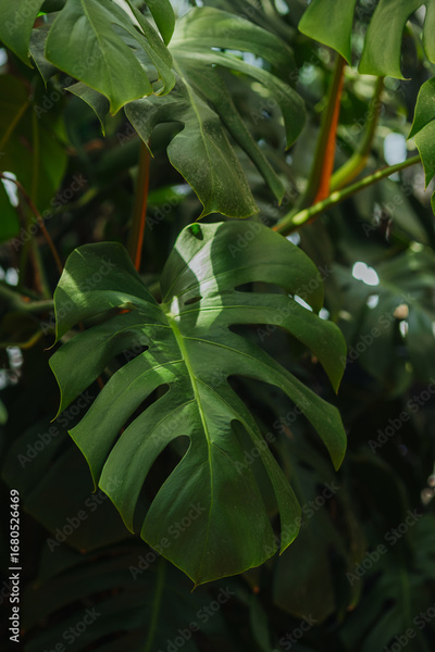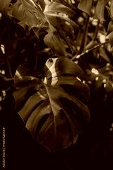 macro of monstera leaf in warm light – concept: natural structure and botanical form