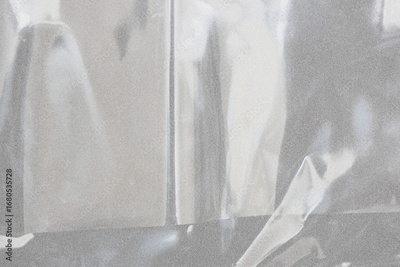 plastic overlay texture of realistic crumpled transparent plastic film wrap on black background