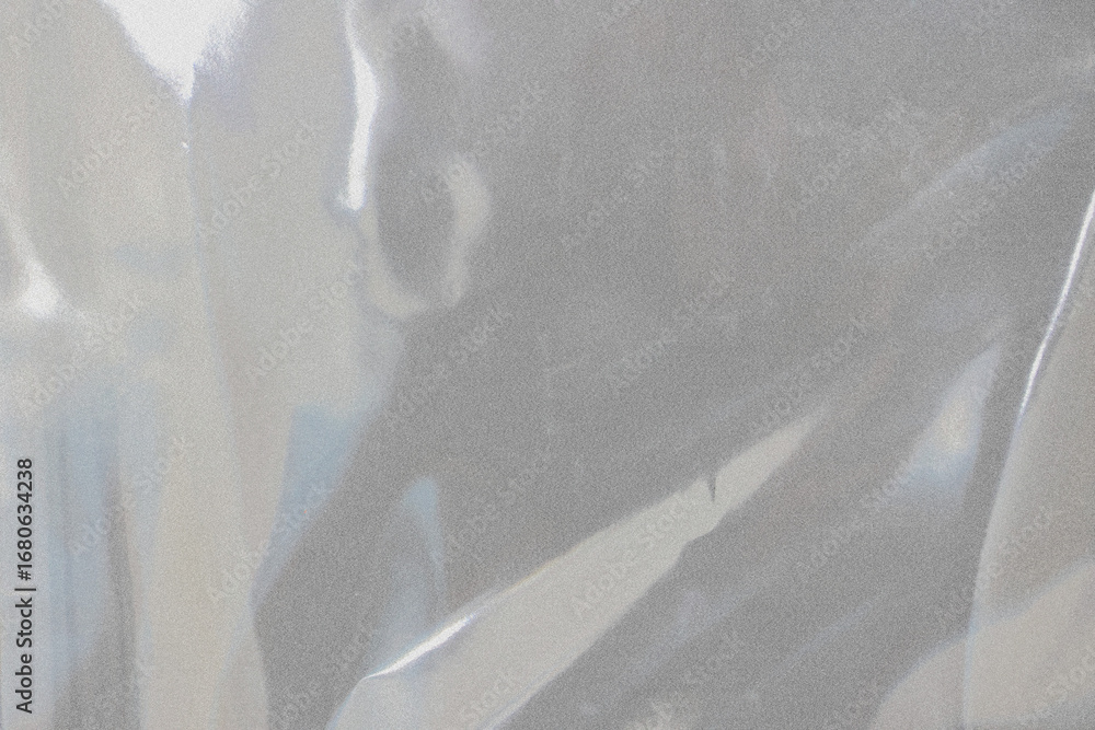Plastic wrap transparent texture overlay effect. Polyethylene packaging of vinyl wrap or cd cover. Shrink crumpled plastic bag sleeve, package mockup illustration