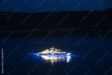 An illuminated luxury yacht in the Adriatiac sea at night in Dalmatia, Croatia.