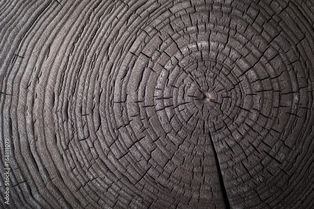 Wood old ash texture of cut tree trunk, close-up.