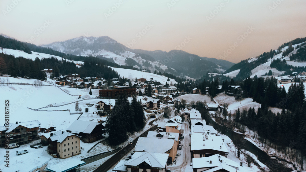 Snowy Mountain Village Landscape