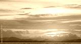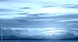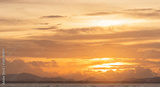 Sunset sky Clouds over sea in the Evening with Orange, Yellow sunlight on golden hour, Horizon sea sky landscape mountain nature background, Autumn sea Sky