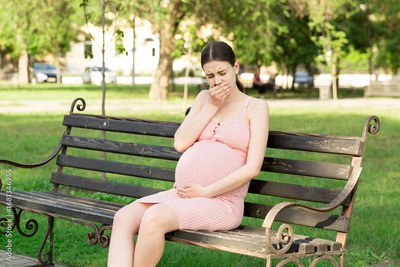 pregnant woman suffering from toxicosis in the park