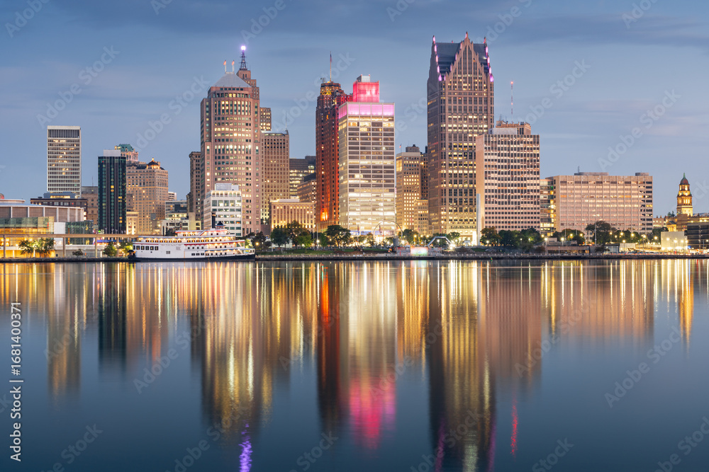 Detroit, Michigan, USA skyline at dawn on the Detroit River