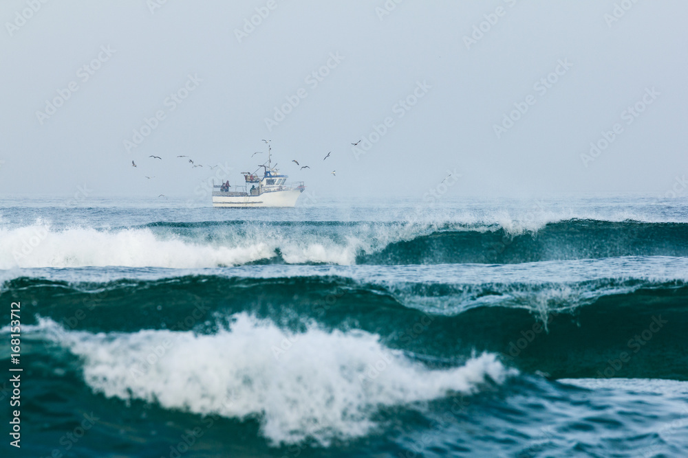 Fishermen boat out on the sea to catch some fish early in the morning. Healthy way of life.