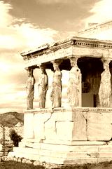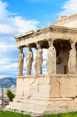 The Porch of the Caryatids on Erechtheion, Acropolis of Athens, Greece. Vertical shot.
