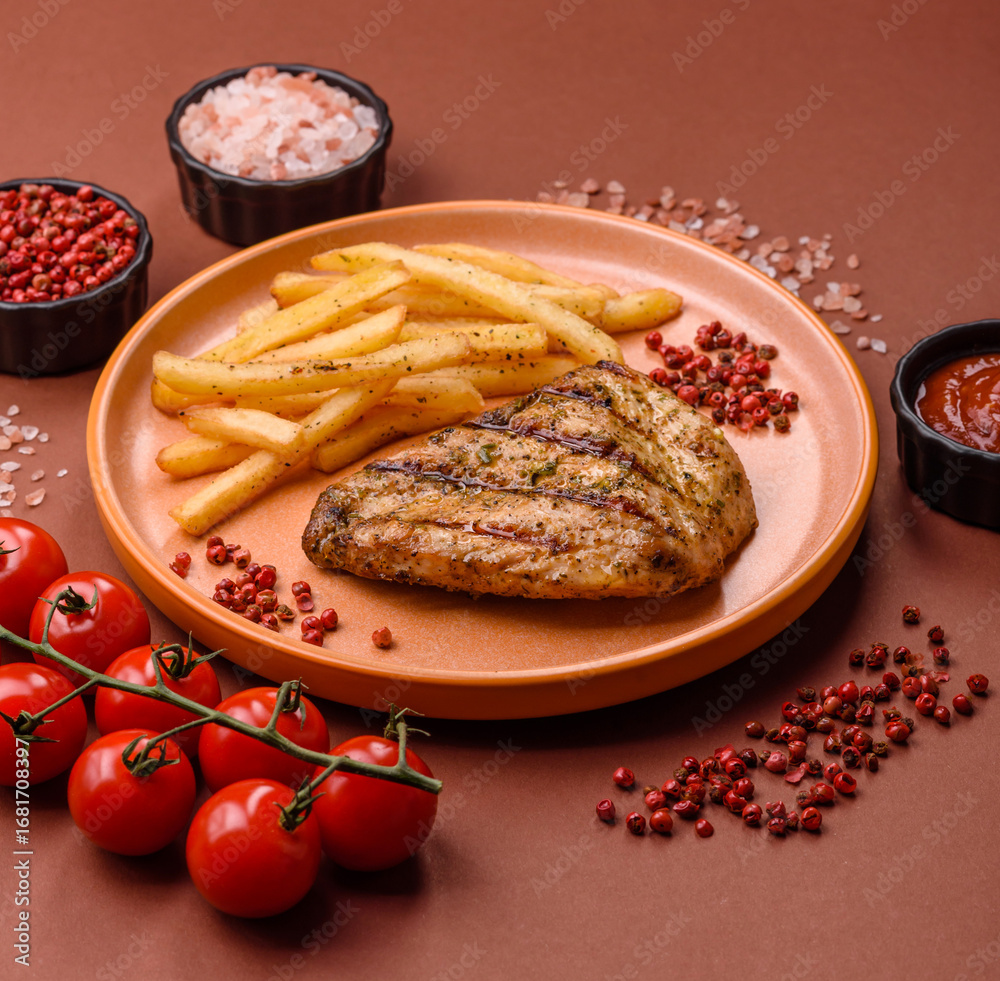 Chicken breast steak, grilled poultry fillet, healthy food, lunch. Chicken steak