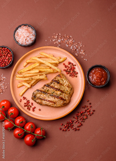 Chicken breast steak, grilled poultry fillet, healthy food, lunch. Chicken steak