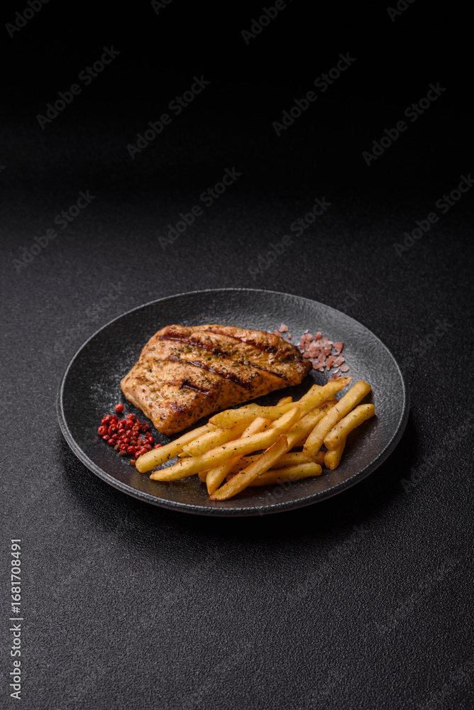 Chicken breast steak, grilled poultry fillet, healthy food, lunch. Chicken steak