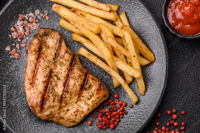 Chicken breast steak, grilled poultry fillet, healthy food, lunch. Chicken steak