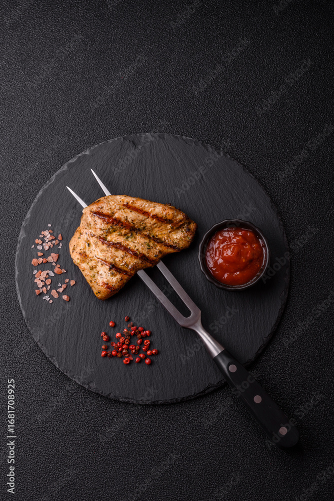 Chicken breast steak, grilled poultry fillet, healthy food, lunch. Chicken steak