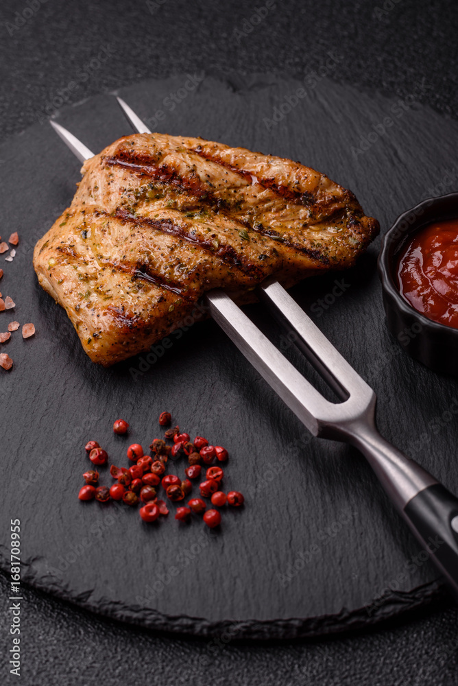Chicken breast steak, grilled poultry fillet, healthy food, lunch. Chicken steak