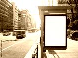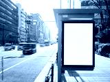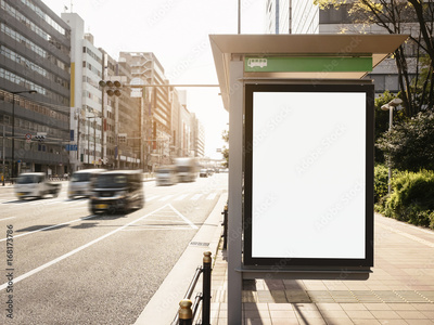 Mock up Billboard Banner template at Bus Shelter Media outdoor city Street