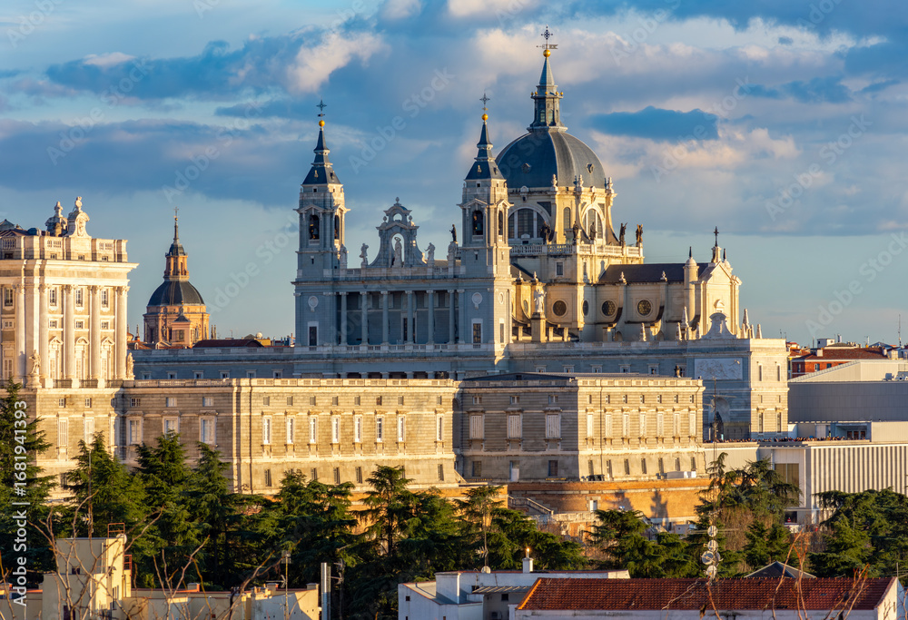 La Almudena (Royal cathedral) at sunset in Madrid, Spain