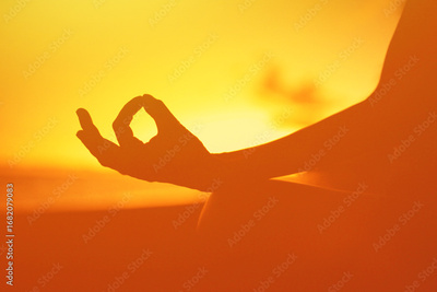 Silhouette of a Meditation Pose Against a Vibrant Sunset