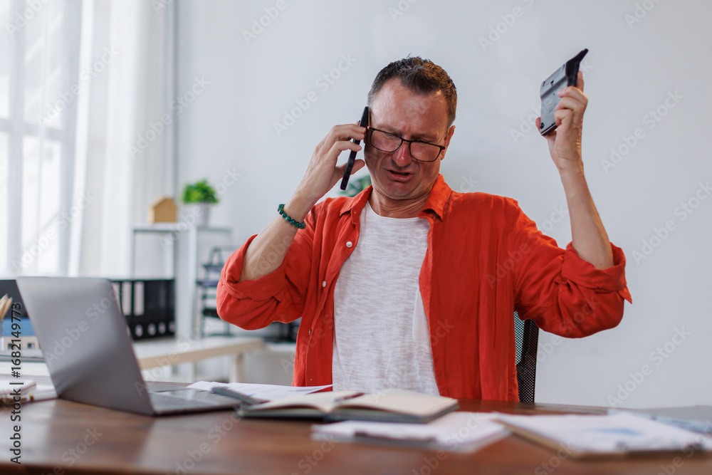 Businessman talking on mobile phone. Male entrepreneur calling someone, having a business call, Man at work, over white background.