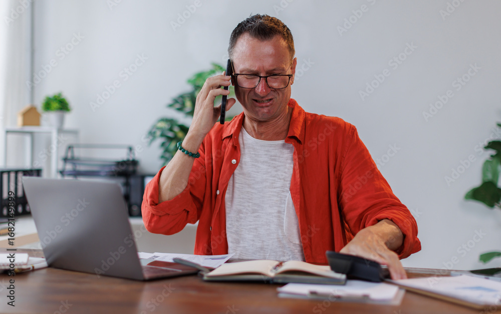 Businessman talking on mobile phone. Male entrepreneur calling someone, having a business call, Man at work, over white background.