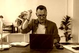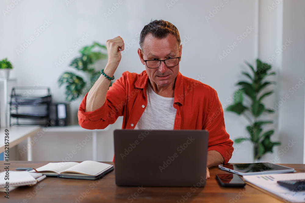 Busy business man manager working on laptop in office writing notes. Professional businessman analyst using computer checking corporate data, watching online webinar, elearning concept.