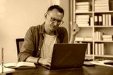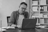 Busy business man manager working on laptop in office writing notes. Professional businessman analyst using computer checking corporate data, watching online webinar, elearning concept.