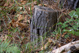 A tree stump with bark in the forest