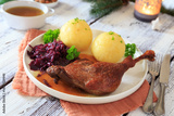 Gänsekeule mit Rotkohl und Kartoffelklößen