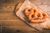 German sweet pretzels made from leavened dough, fusion of donut and pretzel, carnival food