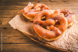 German sweet pretzels made from leavened dough, fusion of donut and pretzel, carnival food