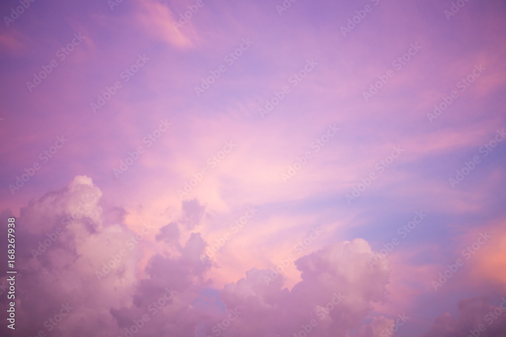 Warm pink glow in cold blue sky. Background empty blurred. Deep blue matte backdrop. Ruddy glow.