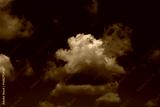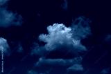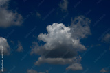 White cumulus clouds drifting across a deep blue sky