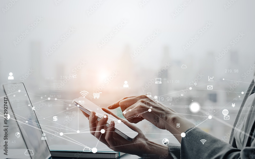 smartphone, smart phone, network, dx, digital transformation, ai, app, social media, business, banner, copy space, advertisement, concept, visual, design, user, data, online, web, internet, search, co