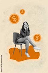 Collage of cheerful person people family friends celebrating money income with dollar signs checkmark approval symbols
