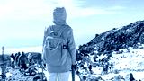 Tourist admiring rock formations in the Teide, Teide National Park, Tenerife, Canary Islands, Spain