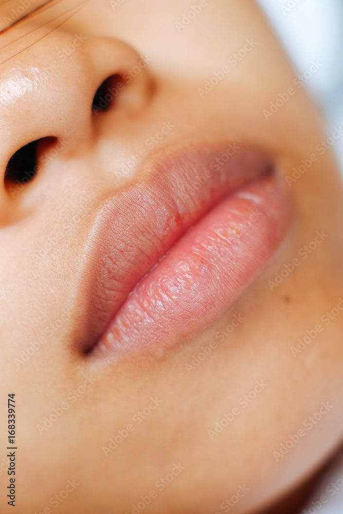 Young Asian woman closeup face sleeping during the day