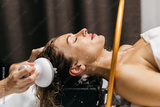 Woman receiving hydromassage therapy in a serene spa environment, enjoying aqua massage treatment with soothing water jets, promoting relaxation and rejuvenation for overall wellness