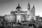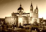 La Almudena (Royal cathedral) on Armeria square at sunset, Madrid, Spain