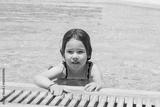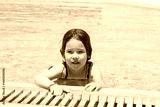Happy little girl swimming in a pool