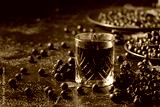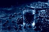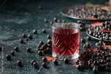 Black chokeberry drink and fresh berries.