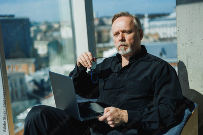 A motivated careeroriented man in a sleek office is focused on his laptop, showcasing his creativity and commitment while diligently working on critical tasks and exciting projects