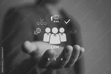 CRM customer relationship management concept with business icons, symbolizing client engagement, marketing strategy, data analytics, customer service, and digital business solutions Customer targeting
