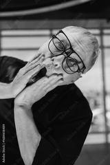 An energetic man with stylish glasses displays a surprised yet playful expression, confidently posing in a vibrant urban setting that embodies modern design trends and a dynamic lifestyle