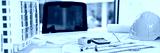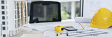 Indoor site engineer workstation with blueprints and project tools