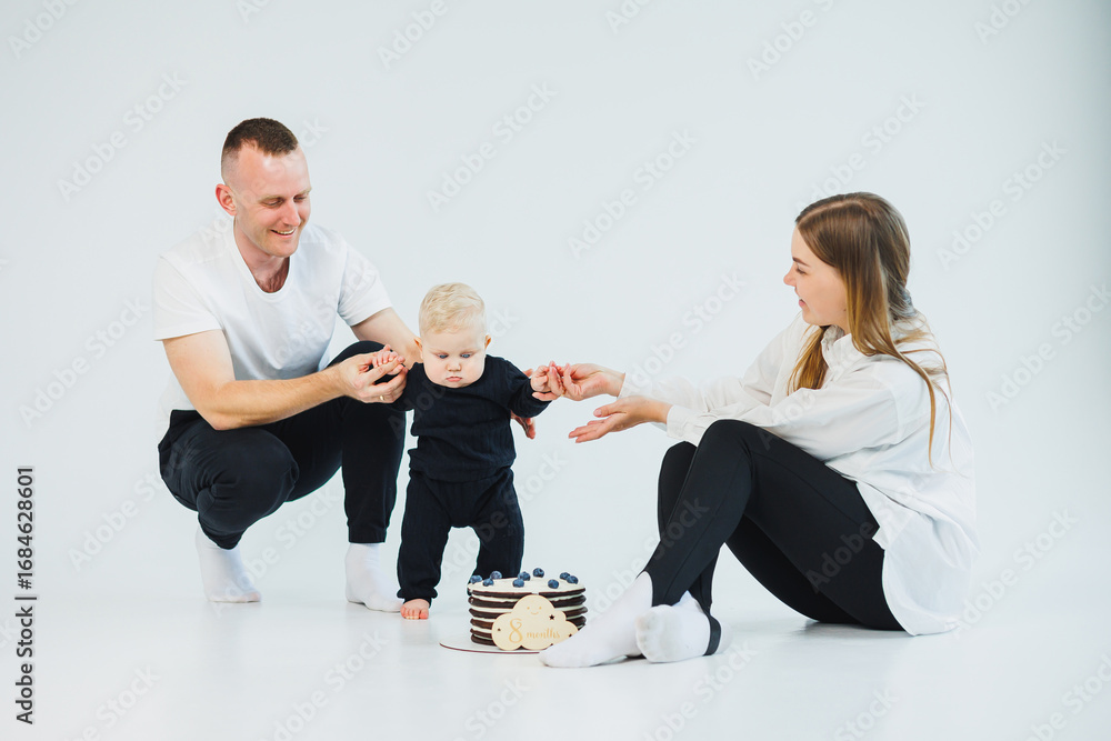 Experience the joyful and heartwarming moments of happy family bonding as you engage in playful activities with your adorable baby in a modern studio setting that enhances creativity and connection