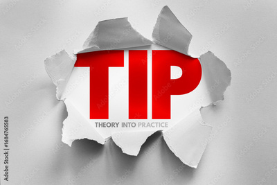 TIP acronym exposed through torn paper with the phrase “Theory Into Practice” below. Motivational concept image symbolizing applied learning, practical implementation, and educational strategies