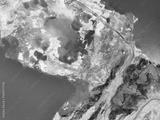 Open pit mine industry. Limestone quarry with backhoe and truck in operation. Heavy machinery in mining industry and construction material supply. Landscape of resource extraction in a industrial site