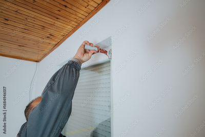 Professional technician working diligently installing electrical fixtures inside a contemporary space.