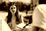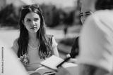 A group of young individuals discuss and study outdoors on a bright sunny day. The scene conveys creativity, education, teamwork, and the vibrant mood of shared learning experiences among peers.